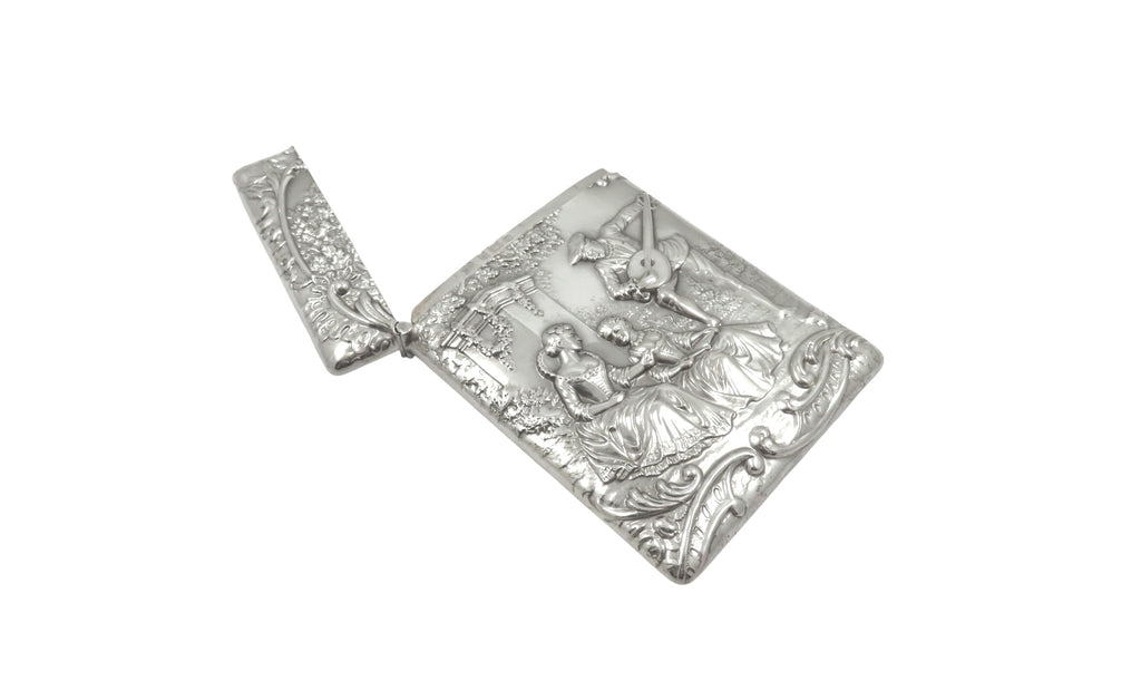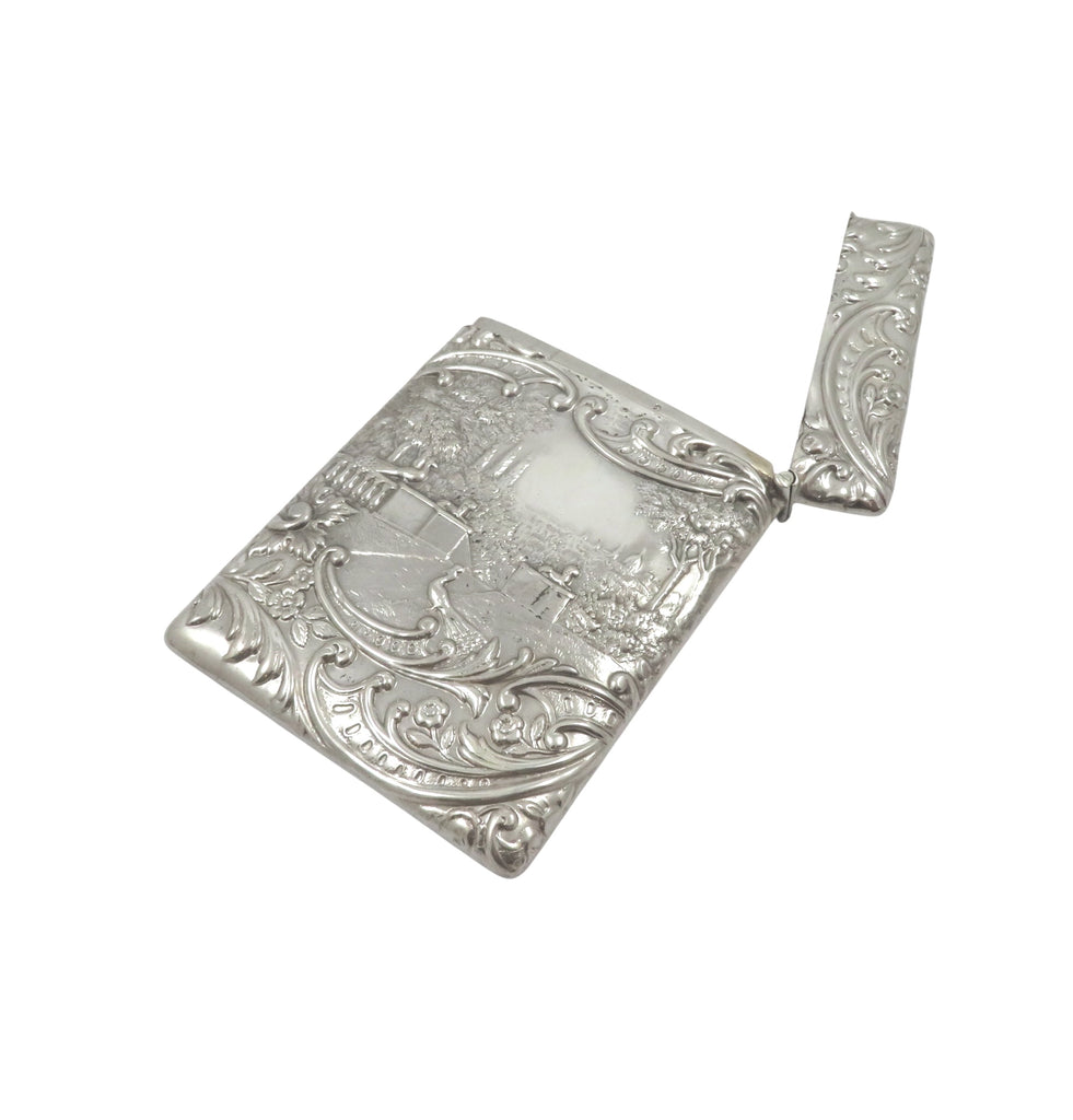 Antique Edwardian Sterling Silver Card Case 1904 'The Music Lesson'