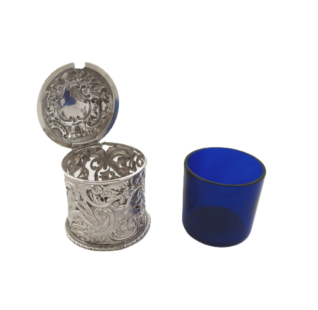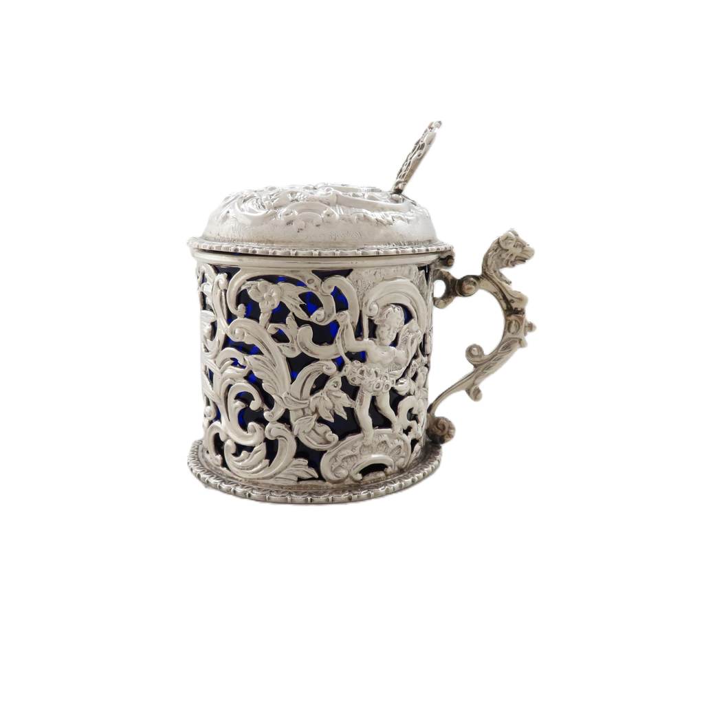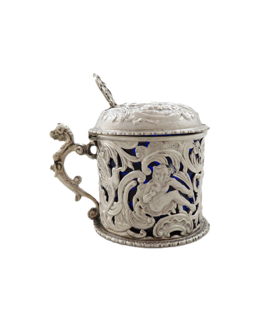 Antique Victorian Sterling Silver 'Cherubs & Birds' Mustard Pot 1900