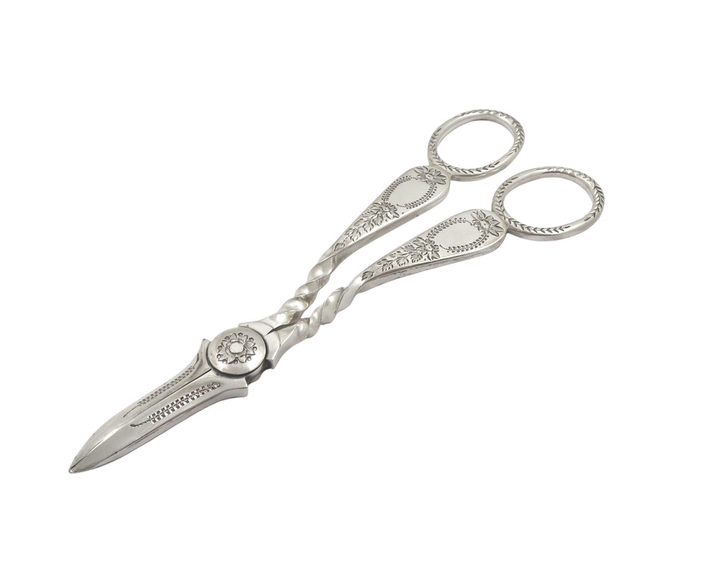 This is a lovely pair of antique Victorian hallmarked sterling silver grape scissors / shears measuring 6 1/2" (17 cms) long complete with their original presentation case.