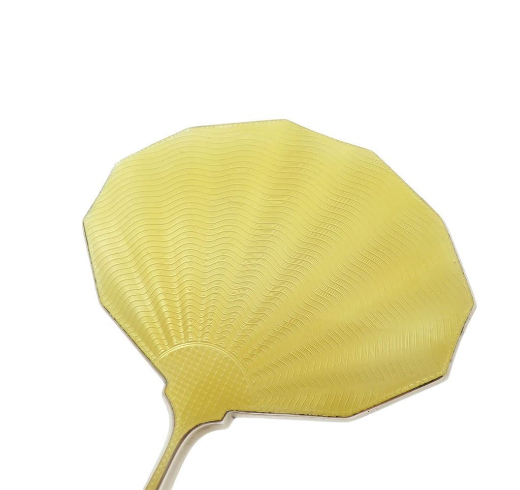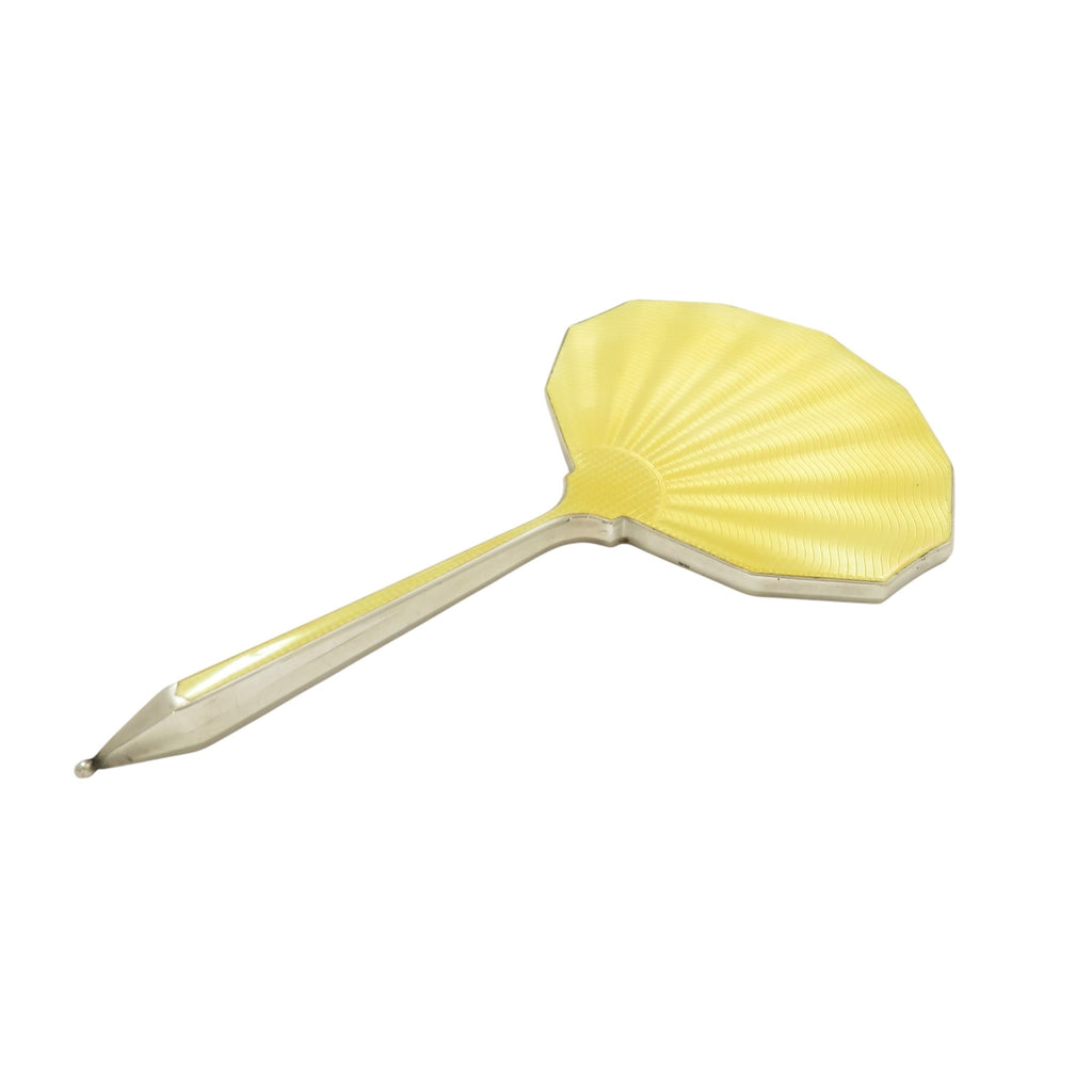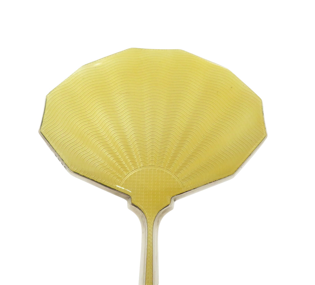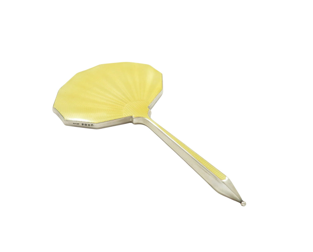 Antique Art Deco Sterling Silver & Yellow Enamel Hand Mirror 1934