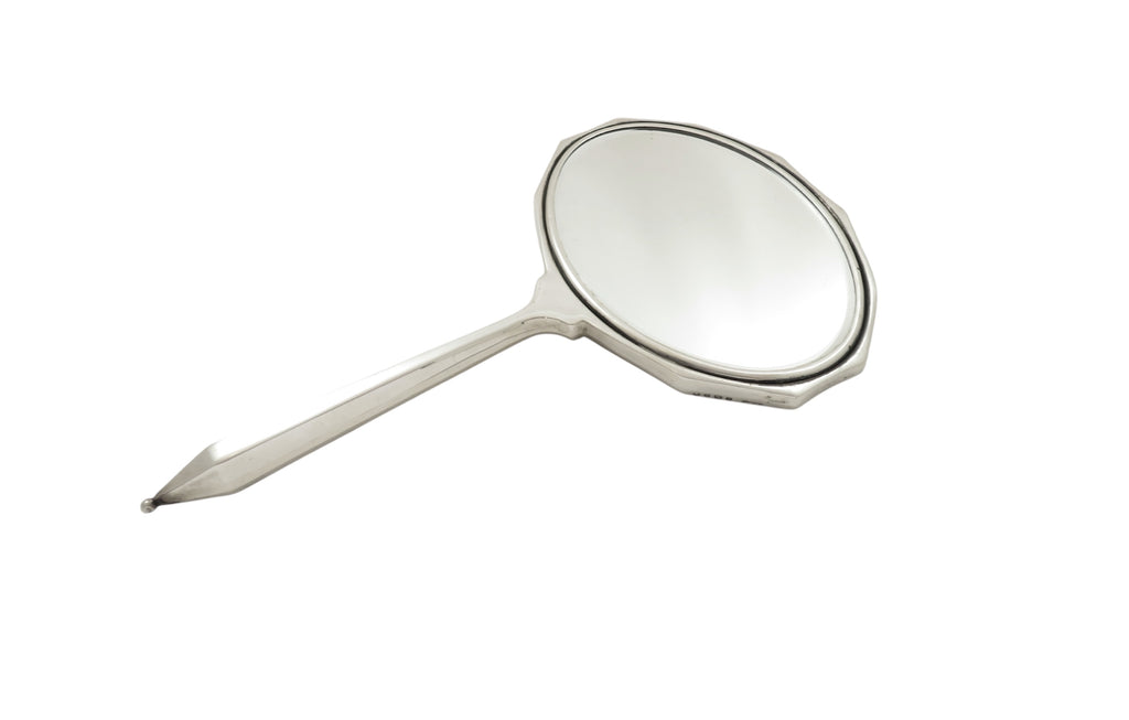 This is a beautiful genuine Art Deco sterling silver hand mirror measuring 9 1/2" (24 cms) long x 5 1/4" (14 cms) across and hallmarked for Birmingham 1934 with the silversmiths mark for Davis, Moss & Co.
