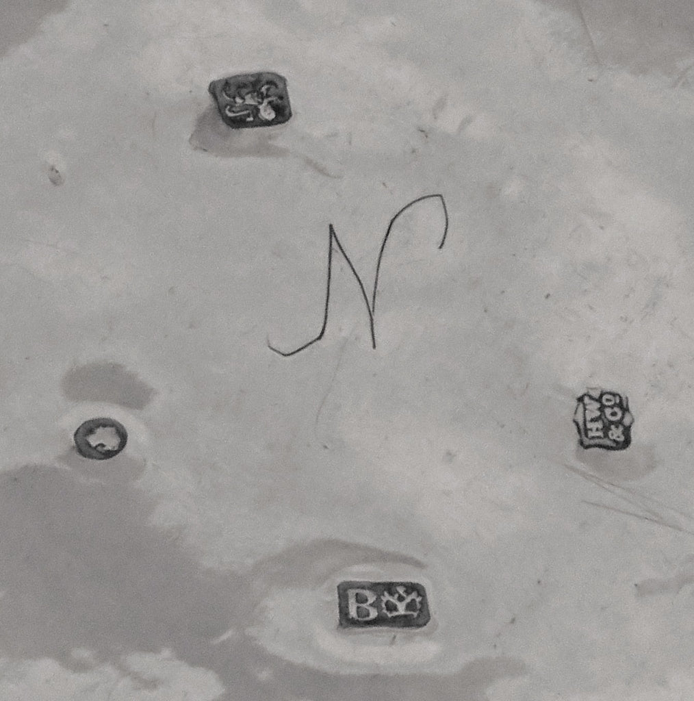 It's hallmarked for Sheffield 1845 with the silversmiths mark for Henry Wilkinson & Co.