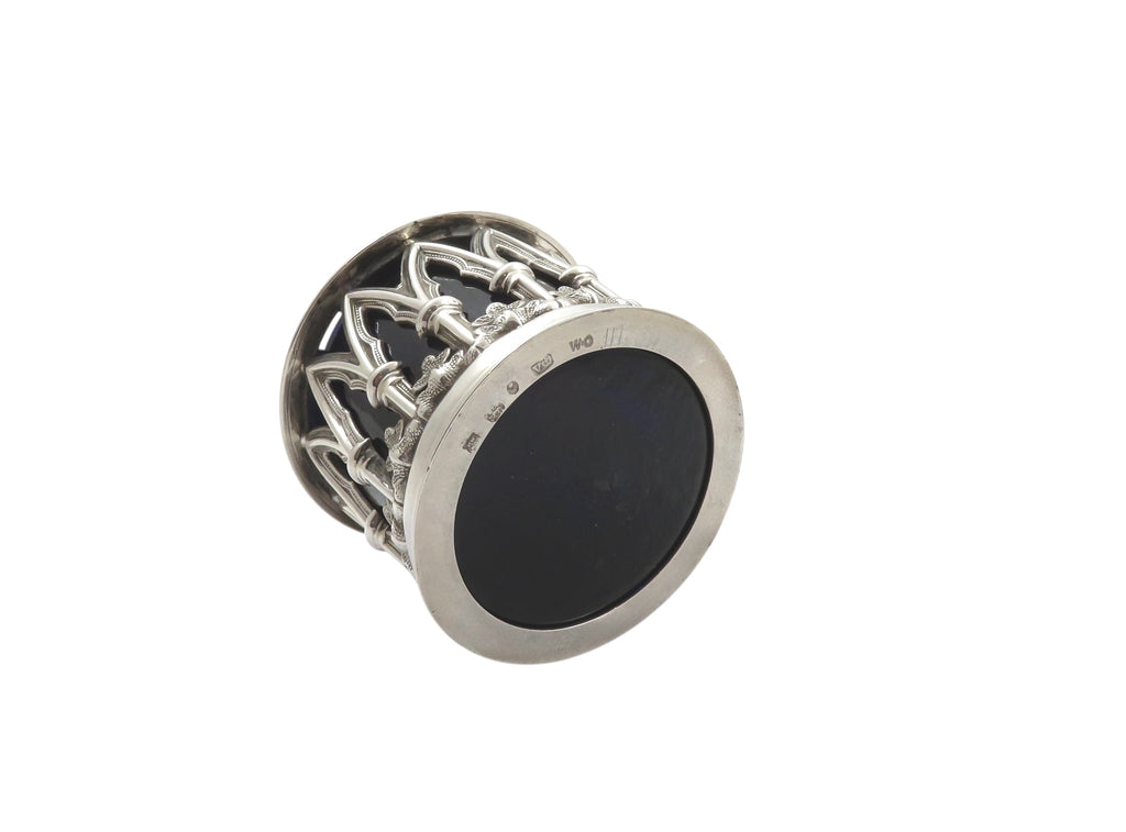 It’s hallmarked for Sheffield 1841 with the silversmiths mark for Henry Wilkinson & Co.and without the liner weighs 115.4 grams/3.7 troy oz.
