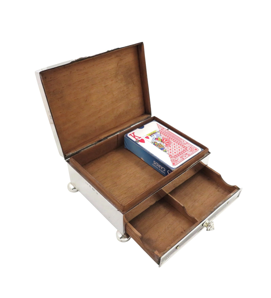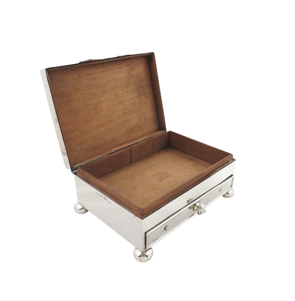 Antique Edwardian Sterling Silver Cigarette/Table/Card Box with Drawer 1901