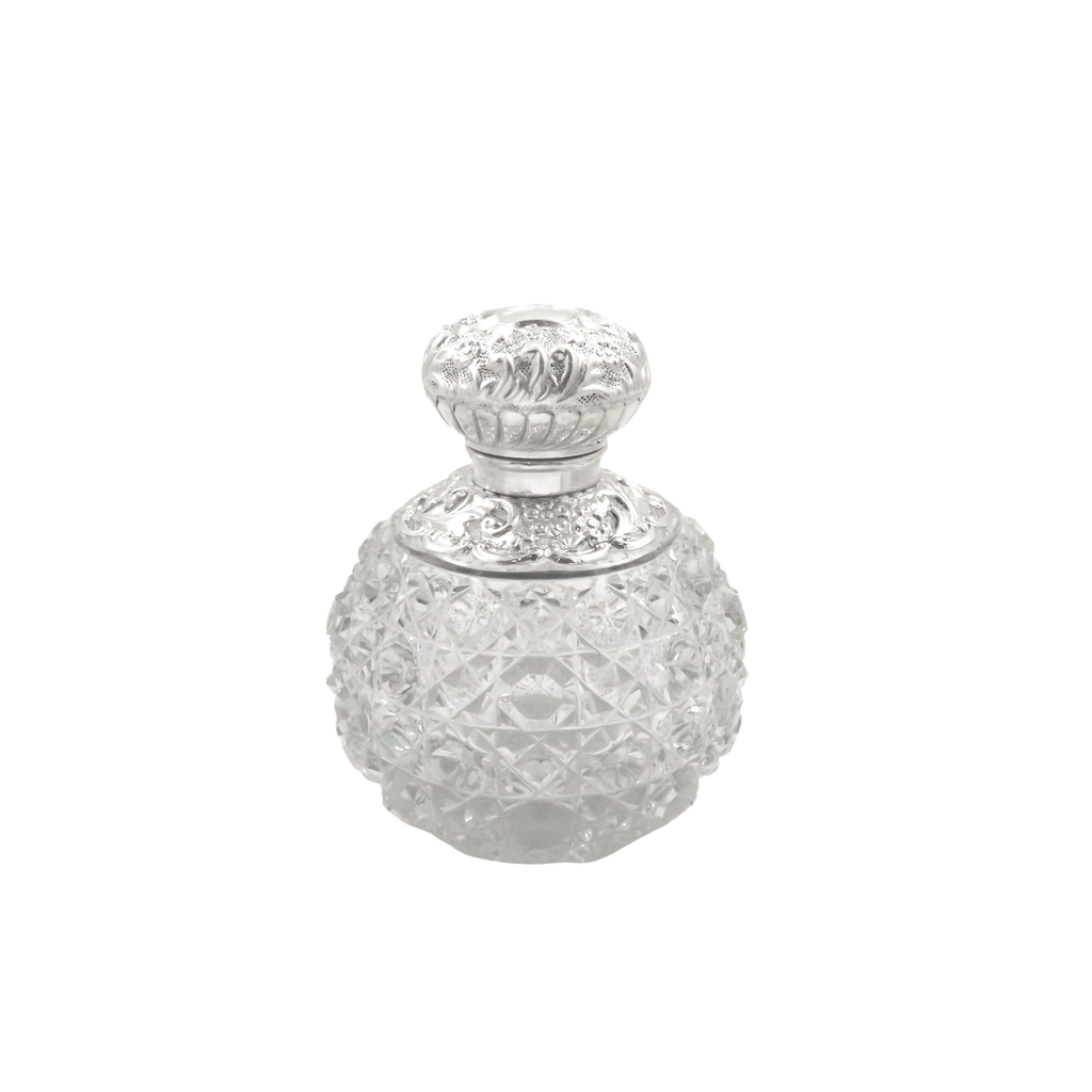 Antique Edwardian Sterling Silver & Cut Glass Scent / Perfume Bottle 1901