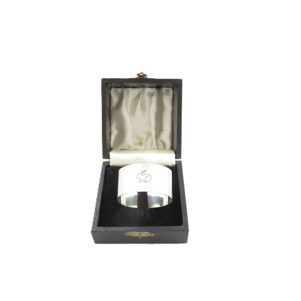 Antique George VI Sterling Silver 'Rabbit' Napkin Ring in Case 1938