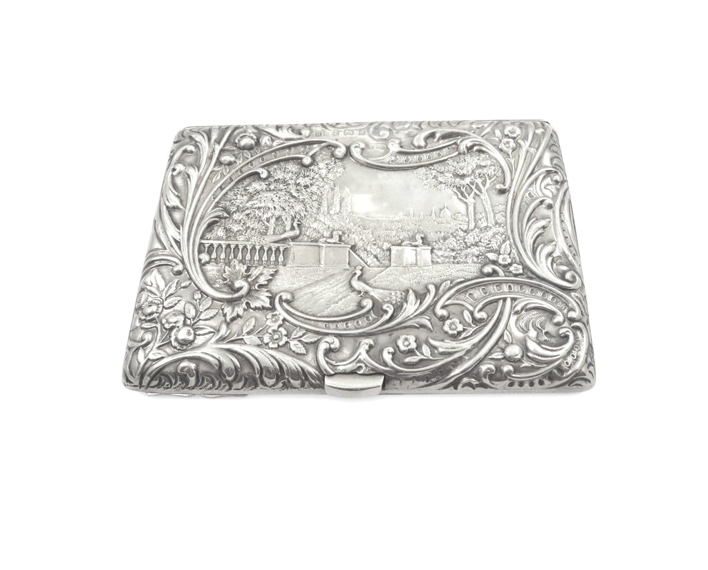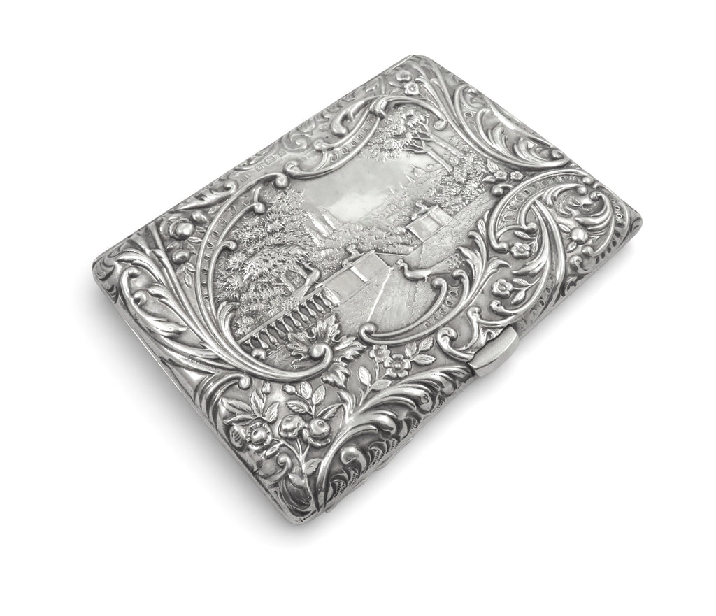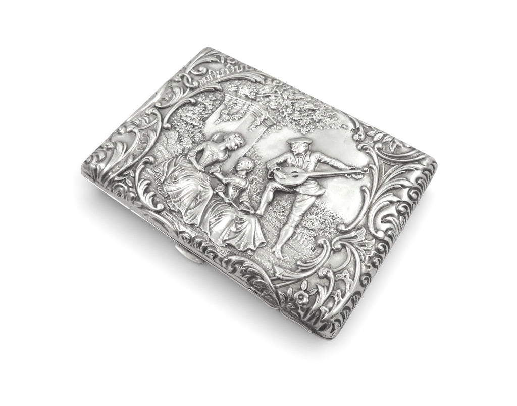 Antique Late Victorian Sterling Silver Card Case/Aide Memoir 'The Music Lesson' 1900