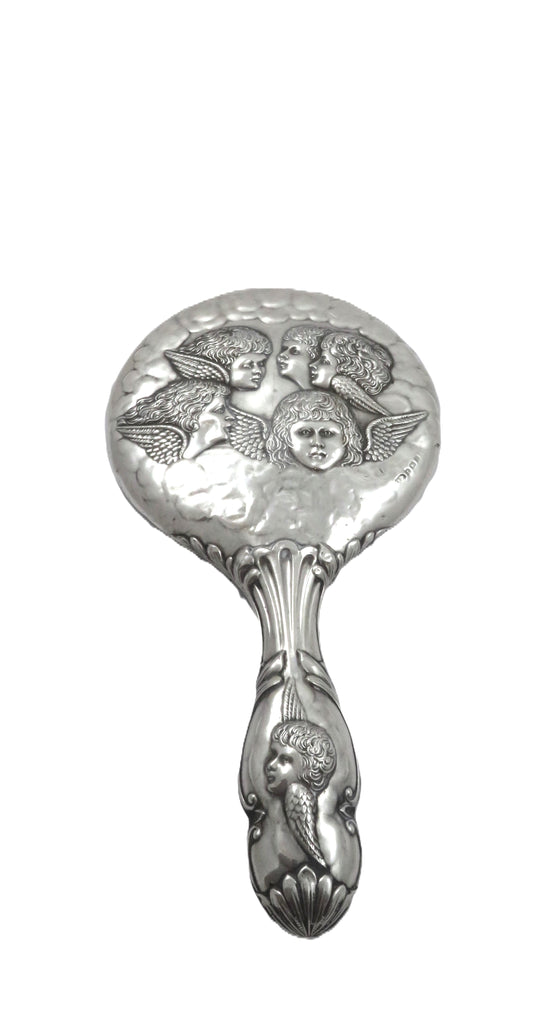 Antique Sterling Silver 'Angels' Hand Mirror 1922