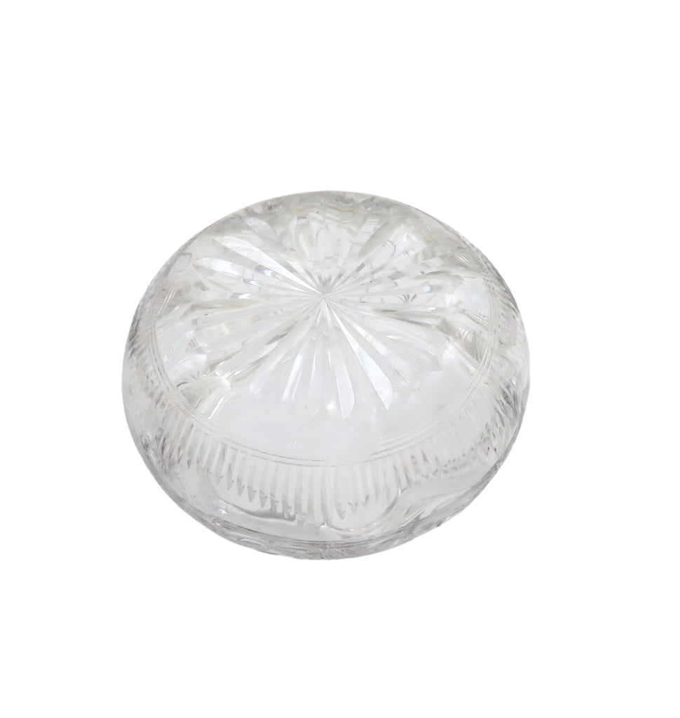 This is a beautiful antique glass vanity jar with sterling silver and blue enamel lid in excellent condition and hallmarked for London 1925 with the silversmiths mark for Charles & Richard Comyns.
