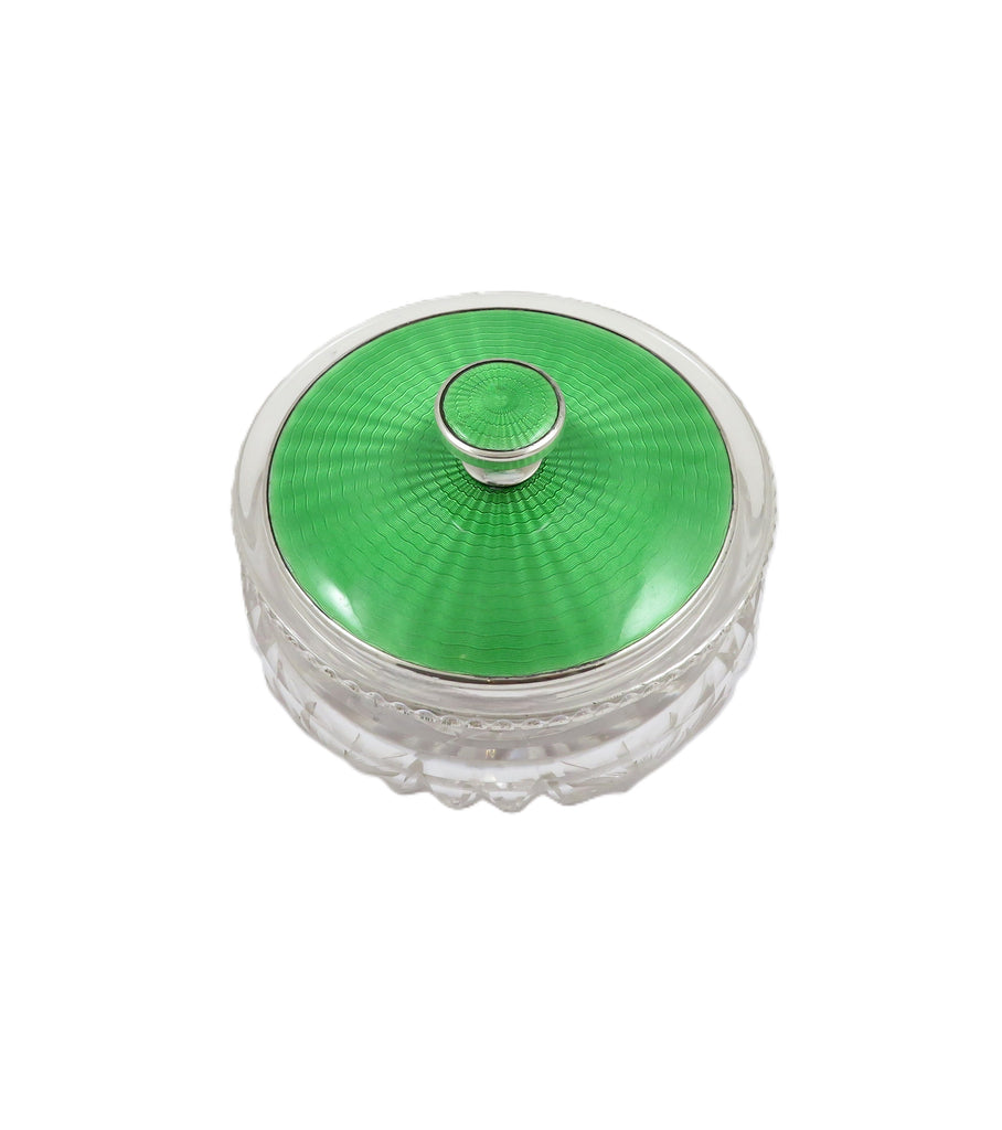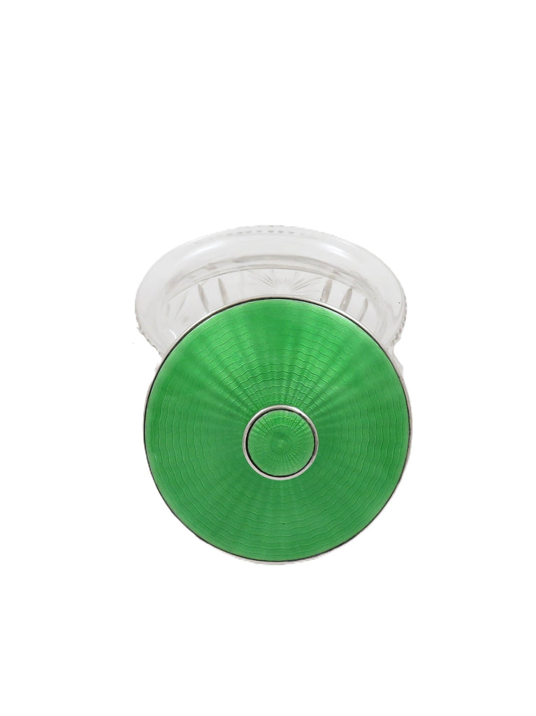 Antique Sterling Silver & Green Enamel Vanity Jar 1936