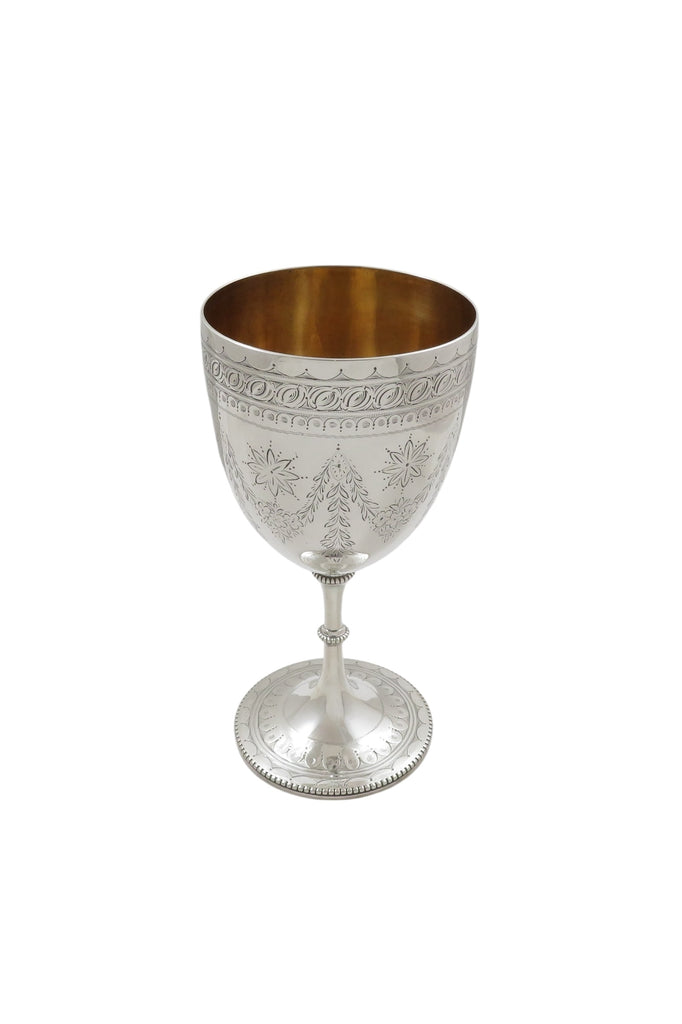 This is a superb antique Victorian sterling silver goblet measuring 6 3/4" (17 cms) tall x 3 1/4" (8 cms) across the top.