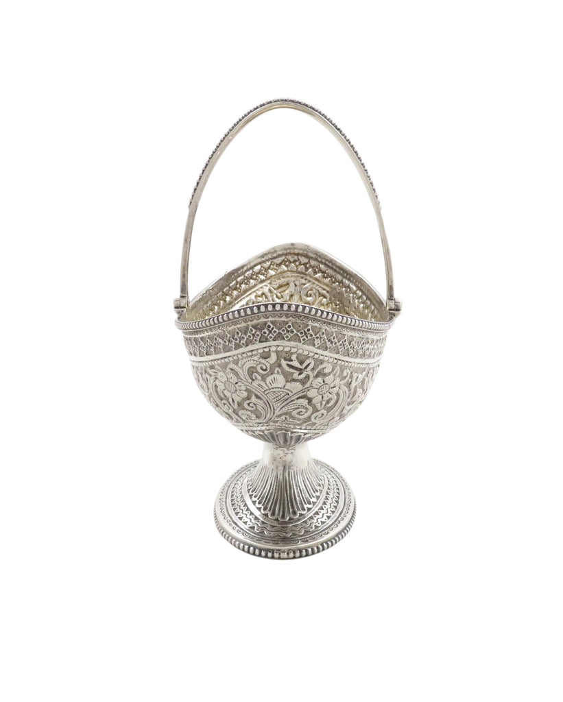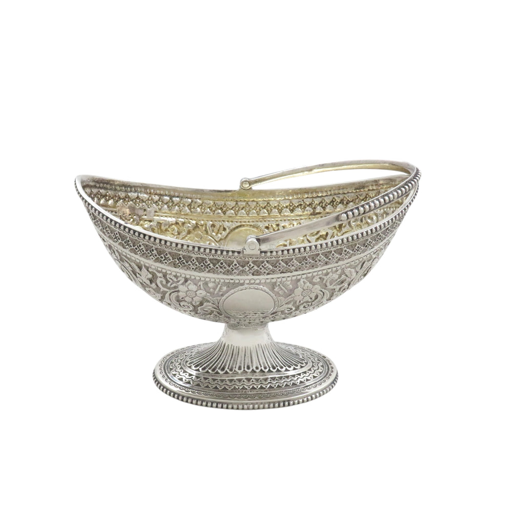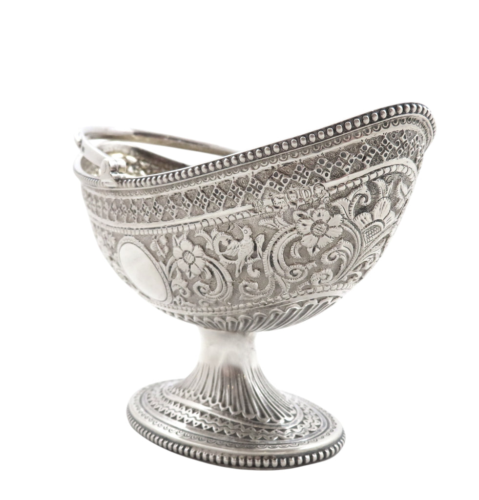 Antique Victorian Sterling Silver Basket with Birds 1879