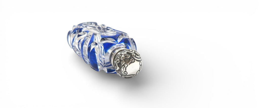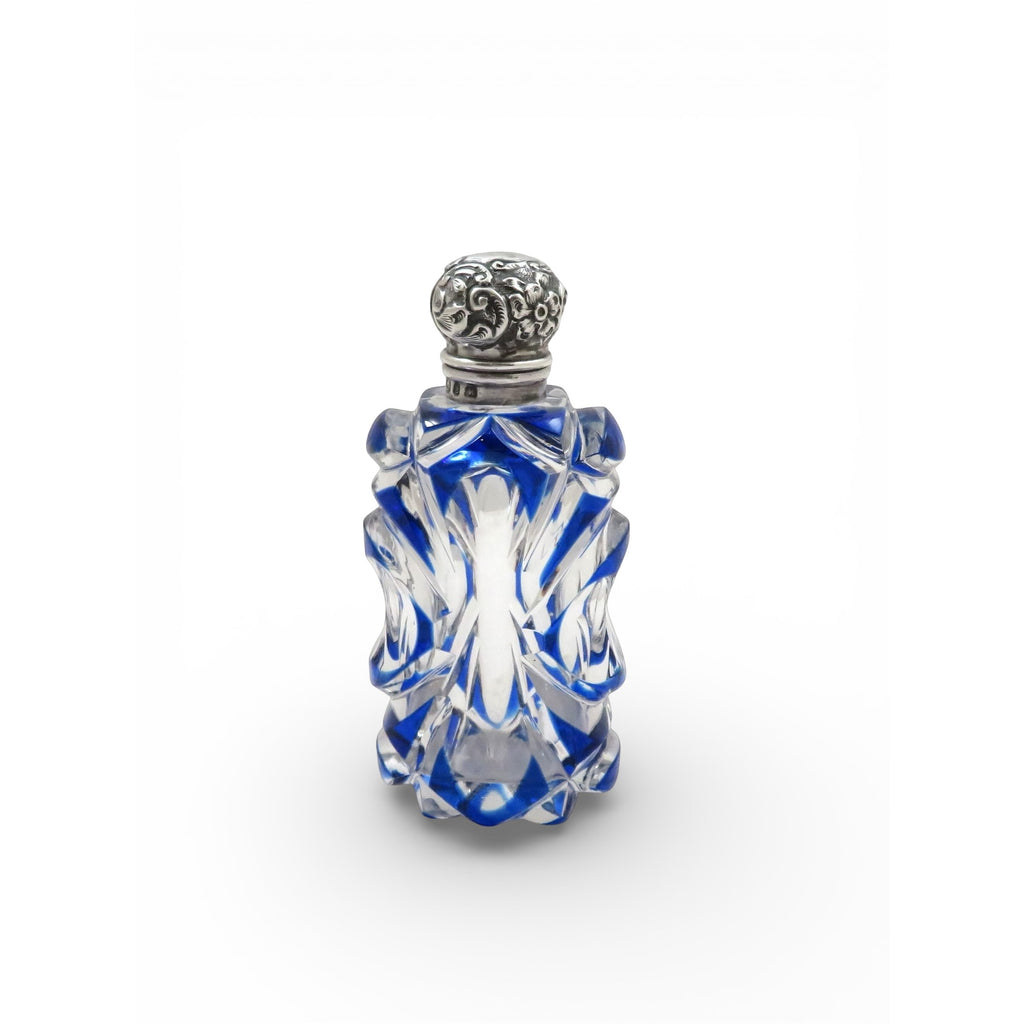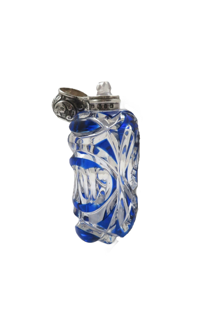 Antique Victorian Sterling Silver & Blue Overlay Glass Scent / Perfume Bottle 1898