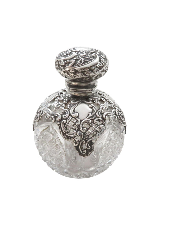 Antique Victorian Sterling Silver & Cut Glass Scent / Perfume Bottle 1898