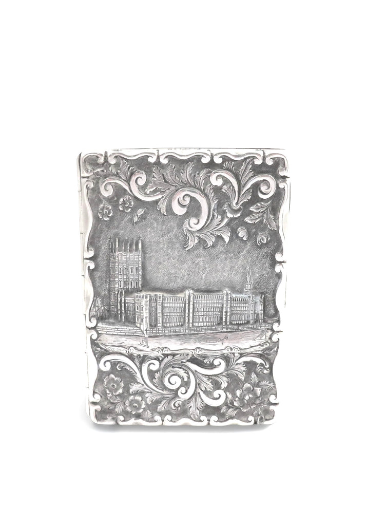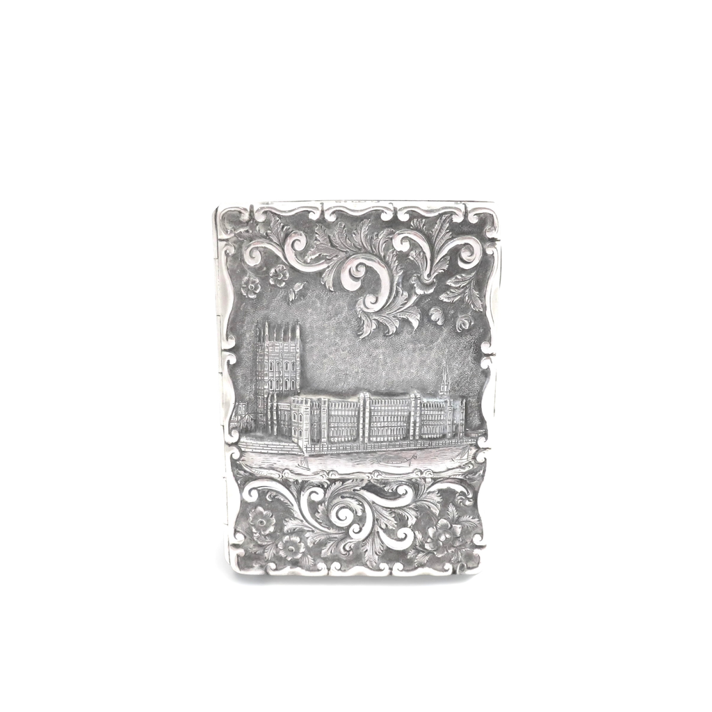 Antique Victorian Sterling Silver 'Houses of Parliament' Card Case/Aide Memoire 1866
