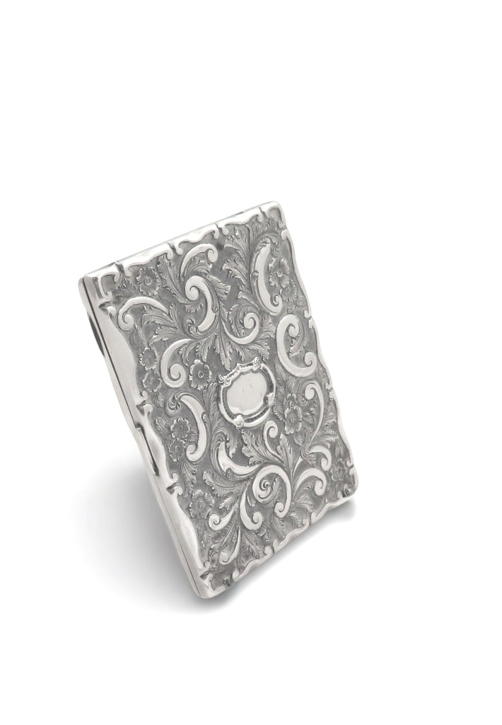 This is a stunning antique Victorian sterling silver aide memoire/card case hallmarked for Birmingham 1866 with the silversmiths mark for Frederick Marson.
