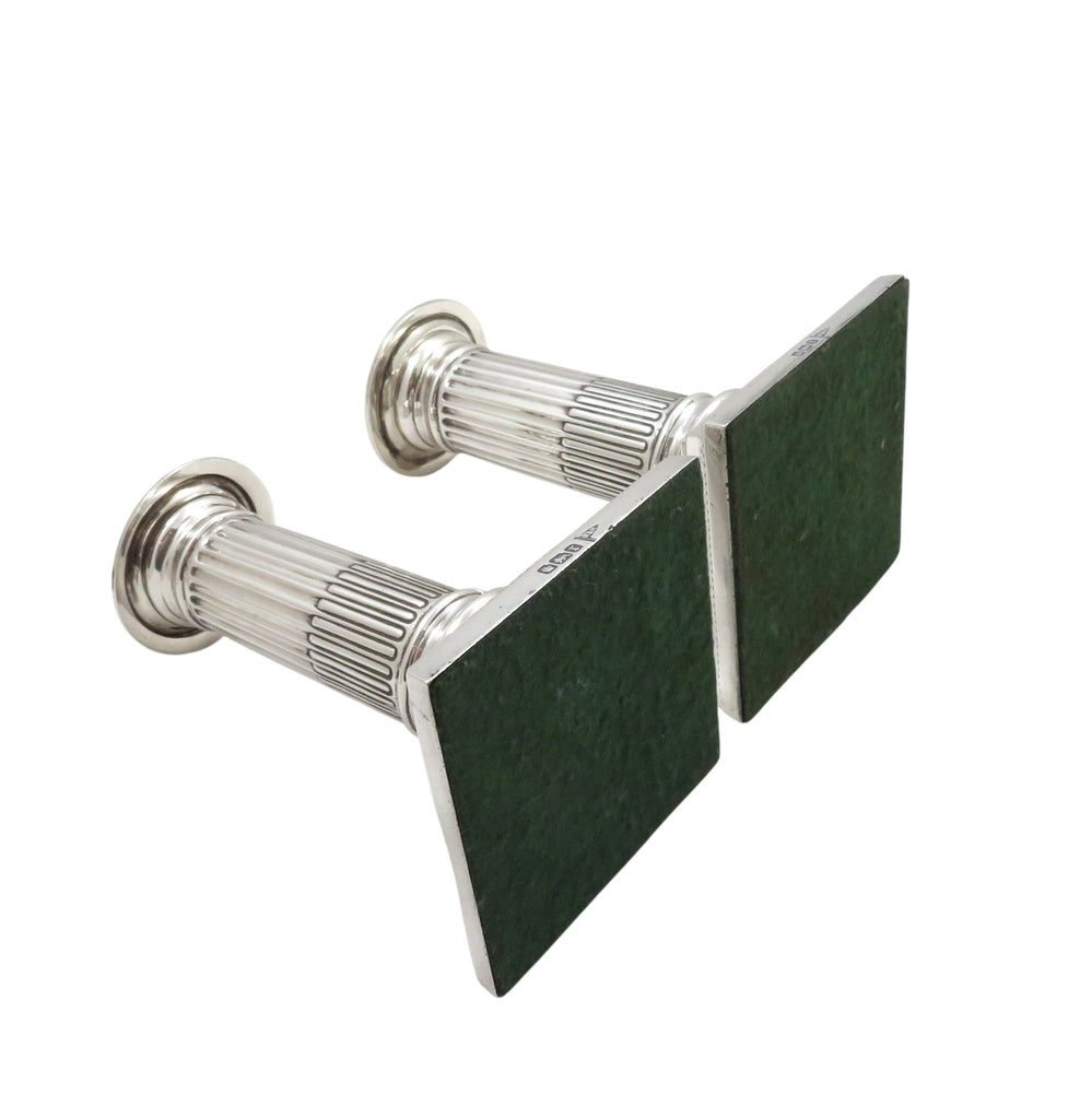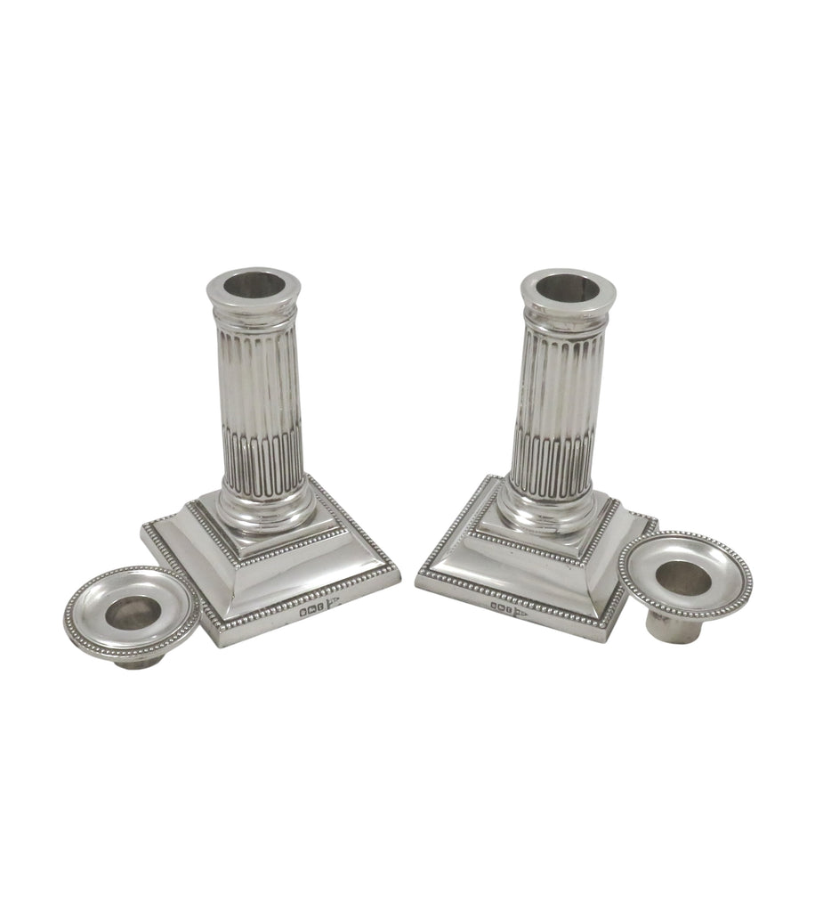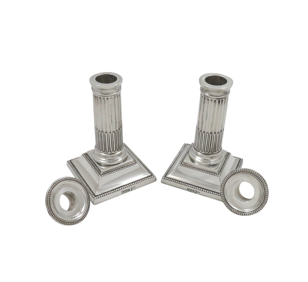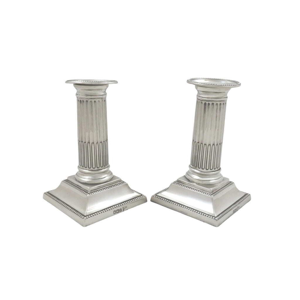 This is a super pair of antique sterling silver Edwardian candlesticks each measuring 5" (13 cms) tall with the bases measuring 3" (7.5 cms) square.