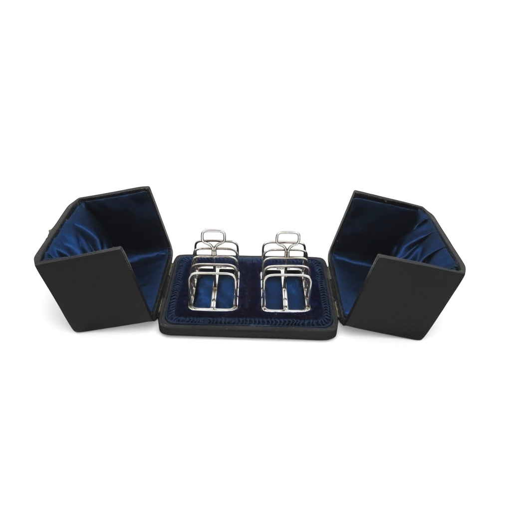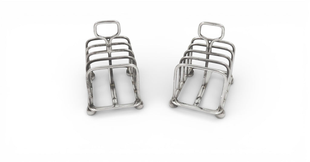 Pair of Antique Edwardian Sterling Silver Toast Racks in Case 1907