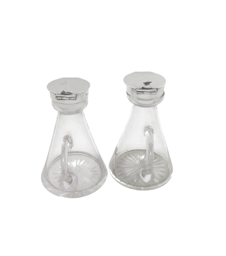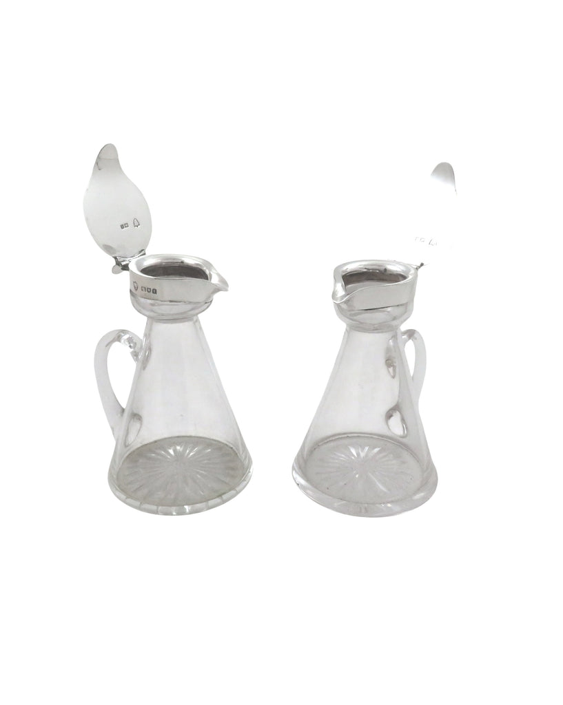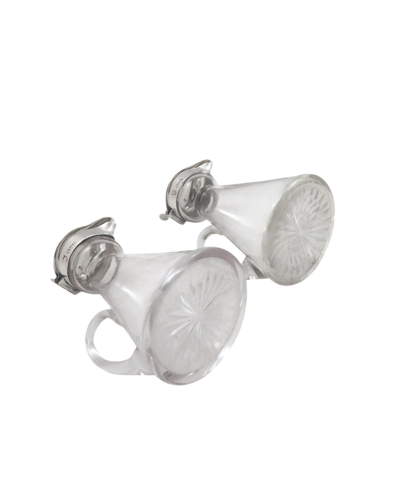 Pair of Antique Sterling Silver & Glass Whisky Noggins / Jugs 1924