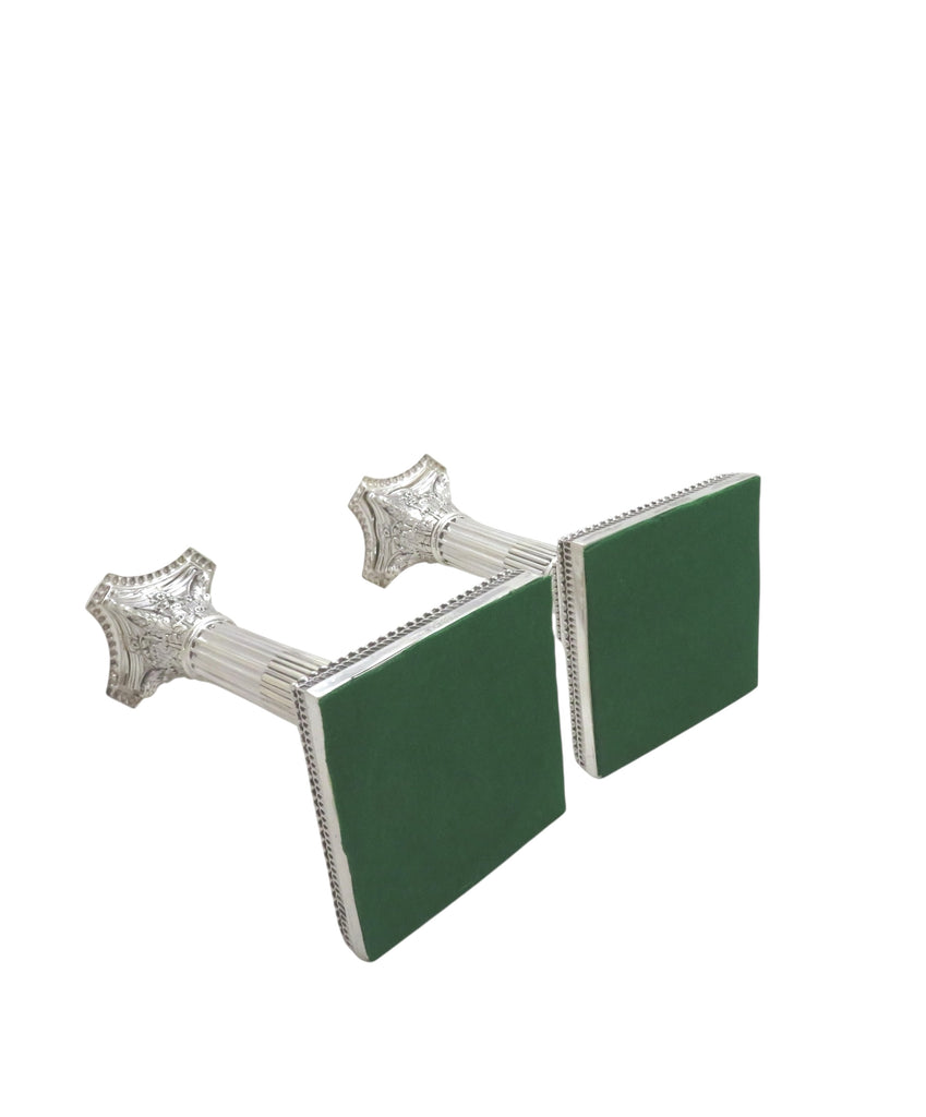This is a lovely pair of antique Victorian sterling silver candlesticks each measuring 6 3/4" (17 cms) tall with the bases measuring 3 1/2" (9 cms) square.