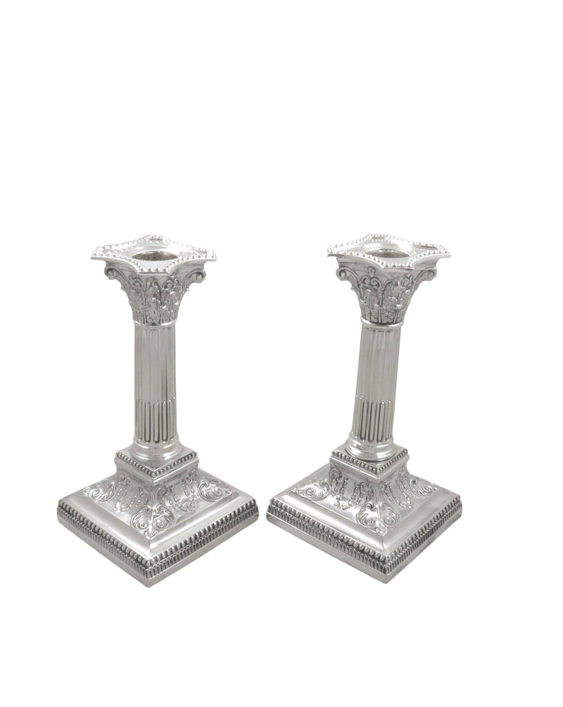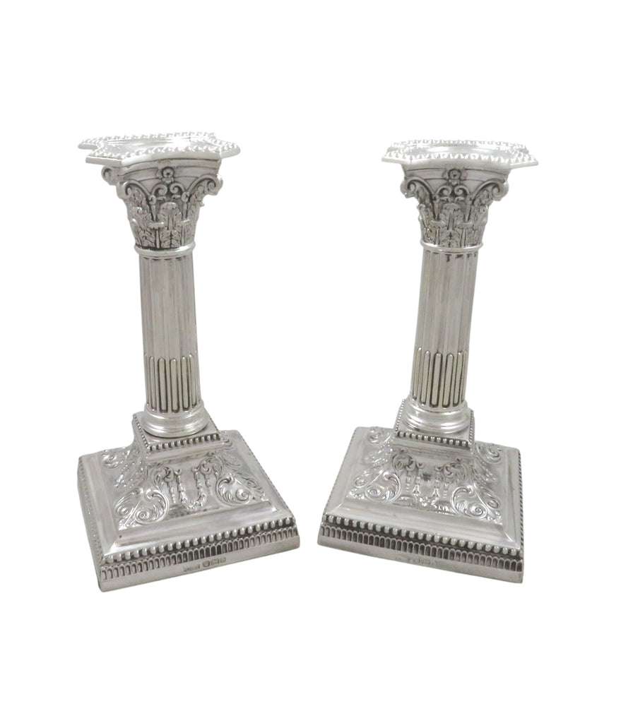 Pair of Antique Victorian Sterling Silver 6 3/4" Candlesticks 1895