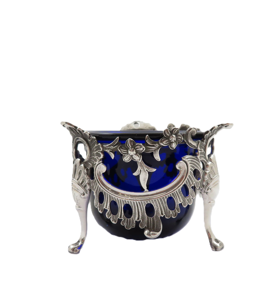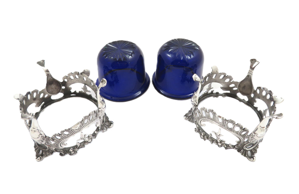 Pair of Antique Victorian Sterling Silver Salts with Liners 1845
