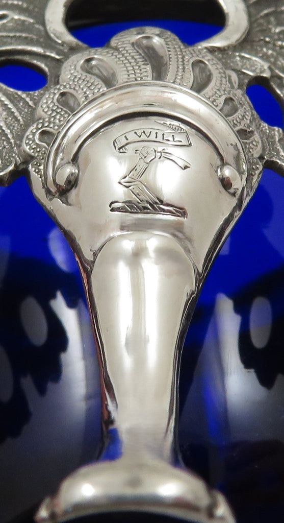 Each salt has a letter 'D' on one leg and an armorial crest on another with the motto 'I Will'.
