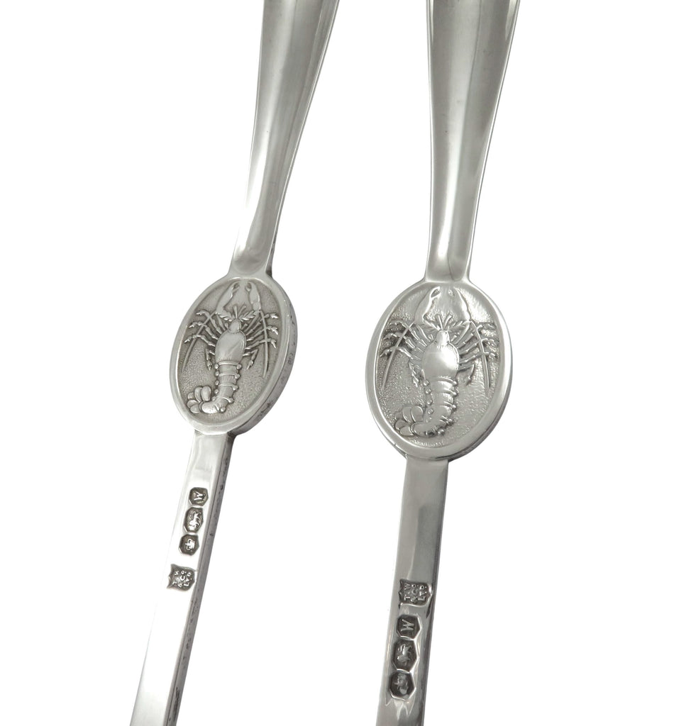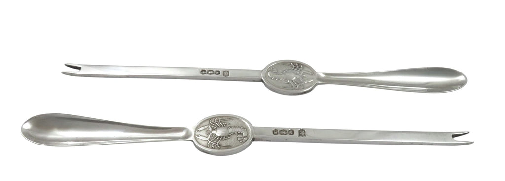 They weigh 85 grams / 2.7 troy oz the pair and are in excellent condition with a decoration of a lobster on each pick.