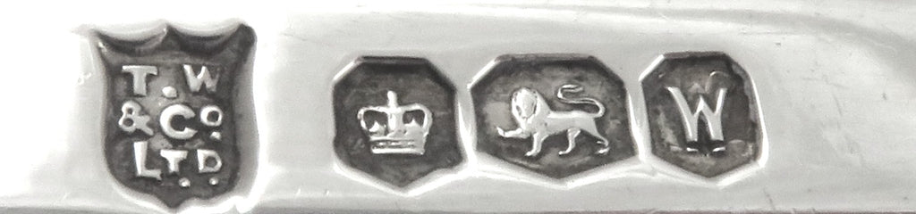 They measure 7 1/2" (19 cms) long and have matching hallmarks for Sheffield 1964 with the silversmiths marks for Travis, Wilson & Co. Ltd.